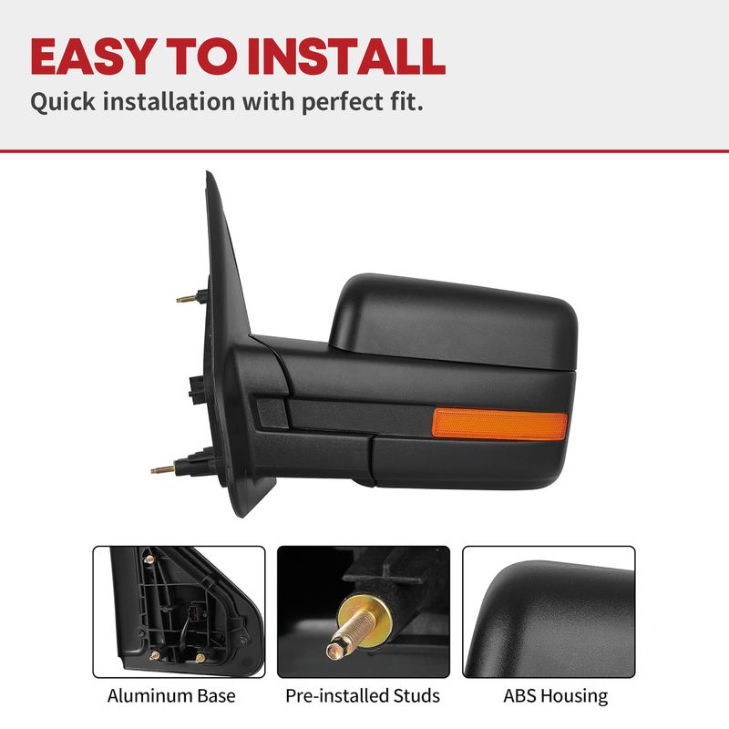 Easy to install: just simply connect the plugs of the side mirror to the corresponding power cord, no drilling or modifications required (professional installation would be highly recommended)