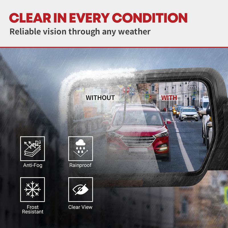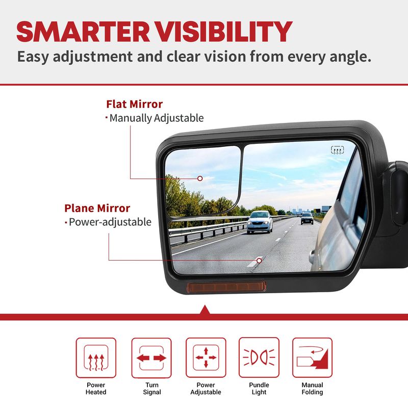 You get a great upgraded towing mirror that meets the same standards set for factory mirrors and they mount in the same location for easy installation.