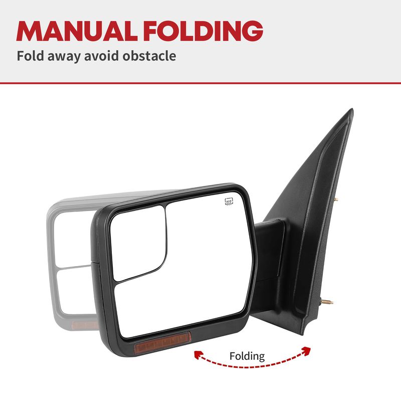 Functions: featuring turn signal light & puddle light & heated plane mirror & manual folding, the multifunctional side mirrors can strikingly enhance your driving experience