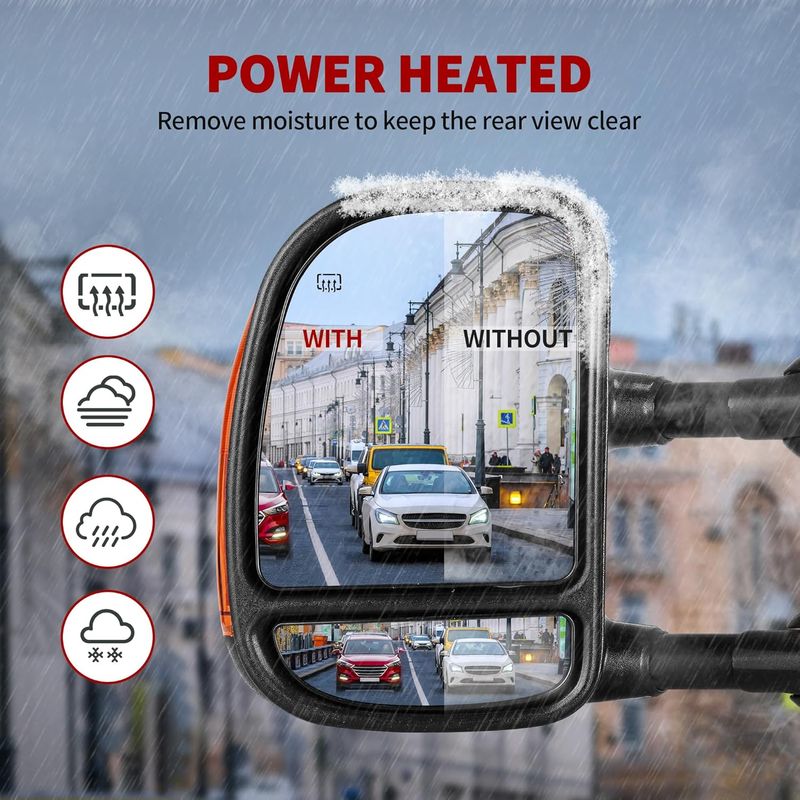• Functions: featuring power adjustable and heated mirror, led signal lights, puddle light, manual folding and Telescoping, the multifunctional side mirrors can strikingly enhance your driving experience