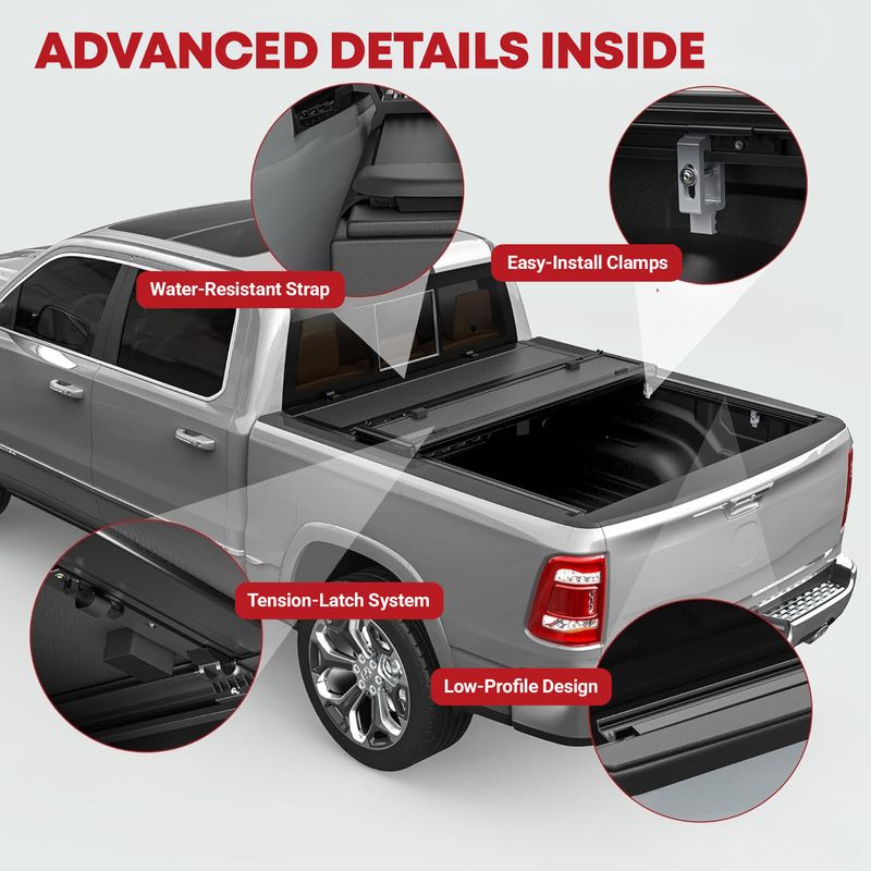 Streamlined Look, Enhanced Style: This low-profile truck bed cover follows your pickup's contours, providing a clean, polished look and reliable cargo protection