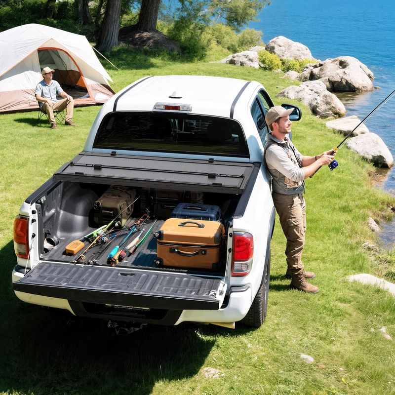 Functional Quad-Fold Design: More flexible than traditional tri-fold covers, this hard quad-fold design allows up to 3/4 access to your truck bed; It is ideal for hauling bulky tools and outdoor gear