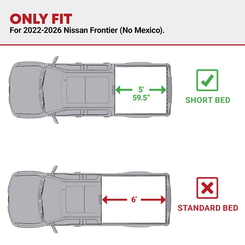 Precision Fit: This tonneau cover is designed for Nissan Frontier(NO México) 2022-2026 with 5 ft beds; It ensures a snug fit and dependable coverage whether you're tackling daily jobs or weekend getaways