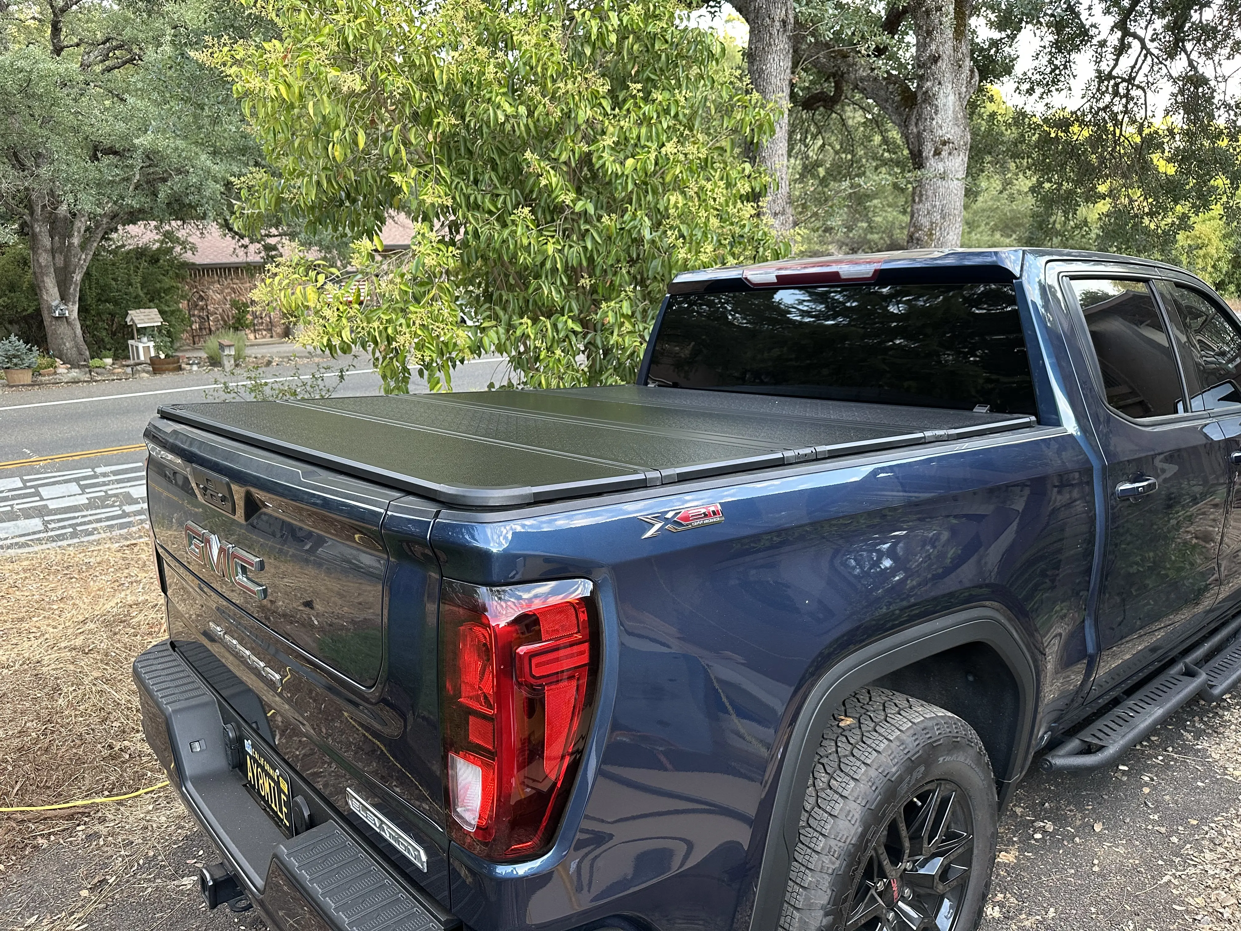 Space-Saving Design: Unlike bulky alternatives, this pickup bed cover's quad-fold design offers a space-saving solution for your truck bed; Quickly access your gear by folding up the cover without losing valuable space