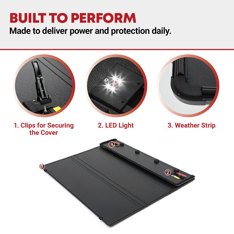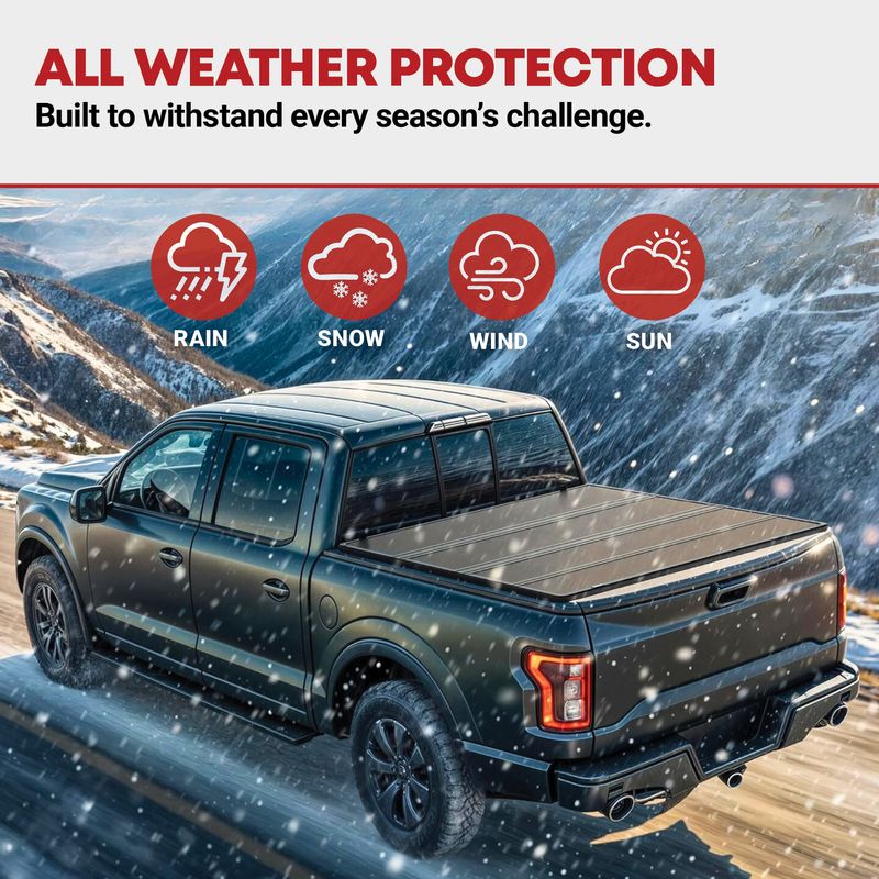 All-Round Protection: Shield your pickup bed from rain, snow, dust, and debris with this truck bed cover; Whether you're hauling gear on a rugged adventure or driving through stormy weather, it ensures your cargo stays safe and dry
