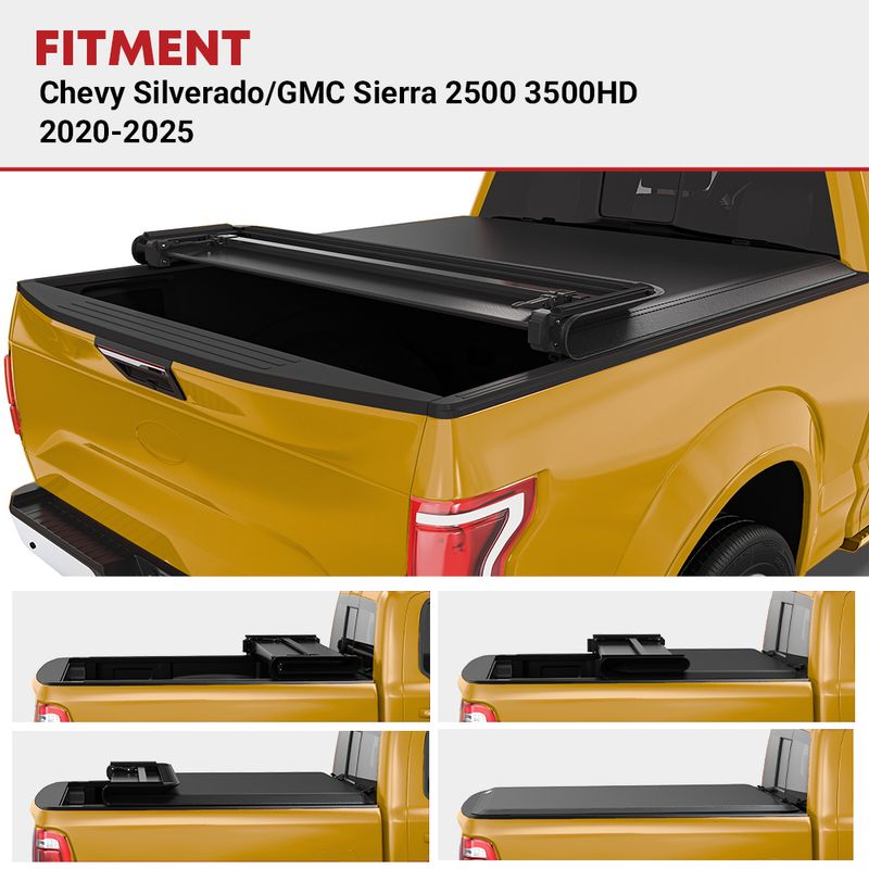 Precisely Fit: Factory brand packaging; Each cover is custom-built to ensure precisly fits for Chevy Silverado/ GMC Sierra 2500 3500HD 2020-2025, Fleetside 6.9 ft Bed (DO NOT FIT Multi-flex tailgate and Carbonpro Bed)