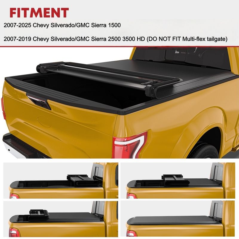 Precisely Fit: Each cover is custom-built to ensure precisely fit for Chevy Silverado/ GMC Sierra 1500 2007-2025 and Chevy Silverado/GMC Sierra 2500 3500 HD 2007-2019 with 6'7" bed (DO NOT FIT Multi-flex tailgate)