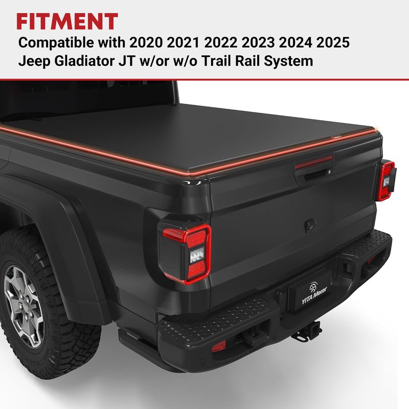 Custom Fit: Each reflective strip style cover is exclusively designed for 5' bed of 2020 2021 2022 2023 2024 2025 Jeep Gladiator | FIT for with or without Trail Rail System; Total factory brand packaging