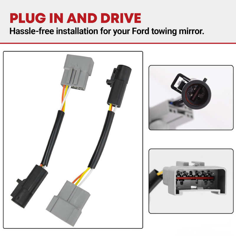 Easy to install: just simply connect the plugs of the trailer towing mirror to the corresponding power cord, no drilling or modifications required(professional installation would be highly recommended)