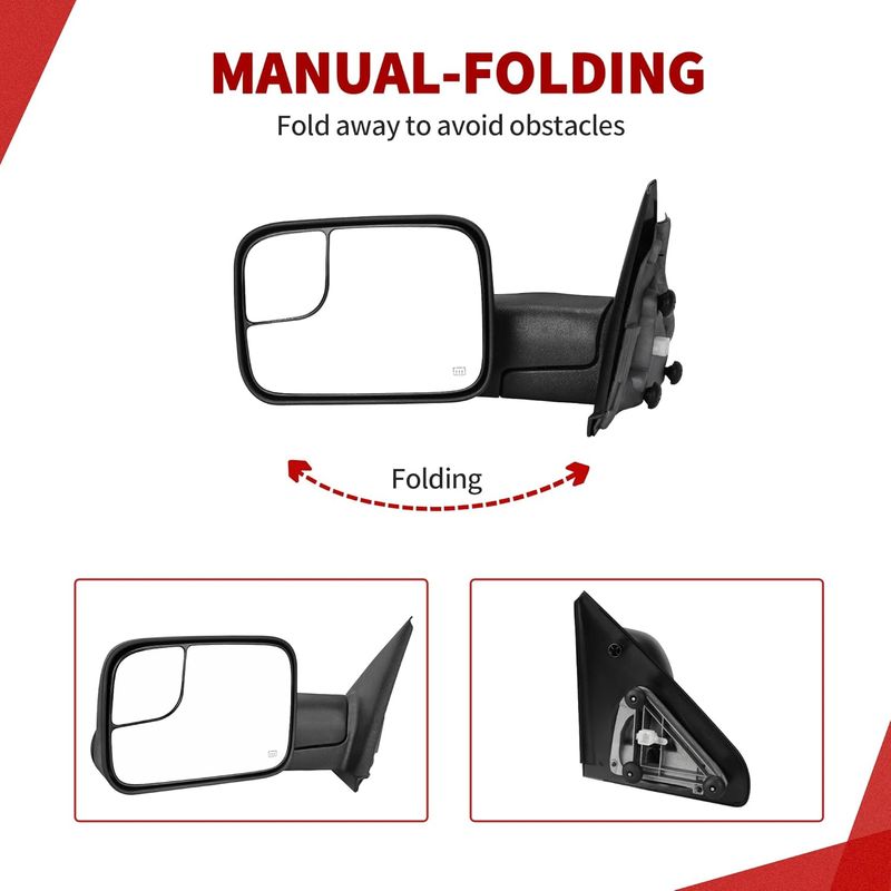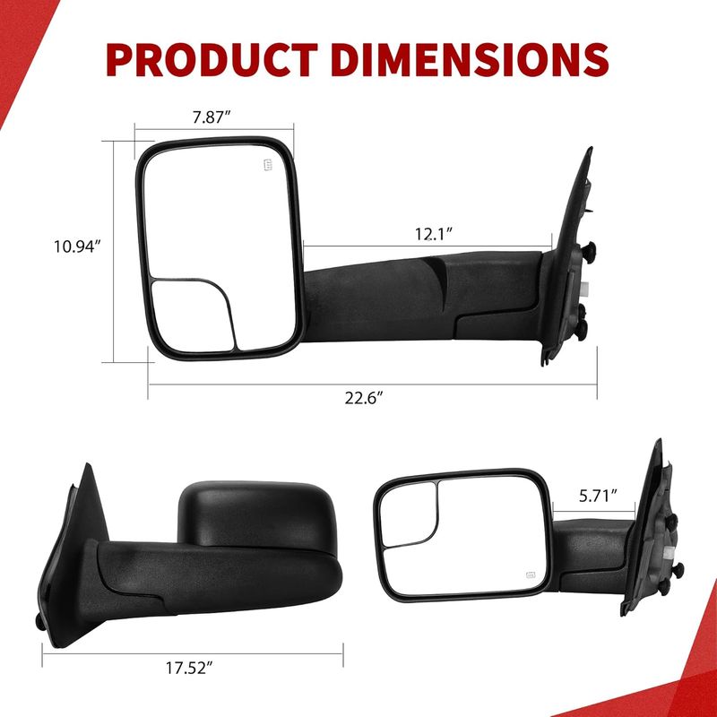 You get a great upgraded towing mirror that meets the same standards set for factory mirrors and they mount in the same location for easy installation.