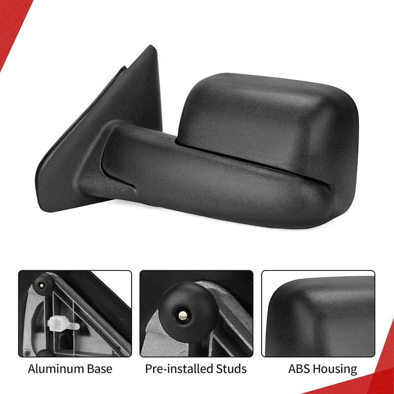 The towing mirrors feature a classic triangle construction, durable aluminum base, and pre-installed studs for a stable installation on your vehicle.