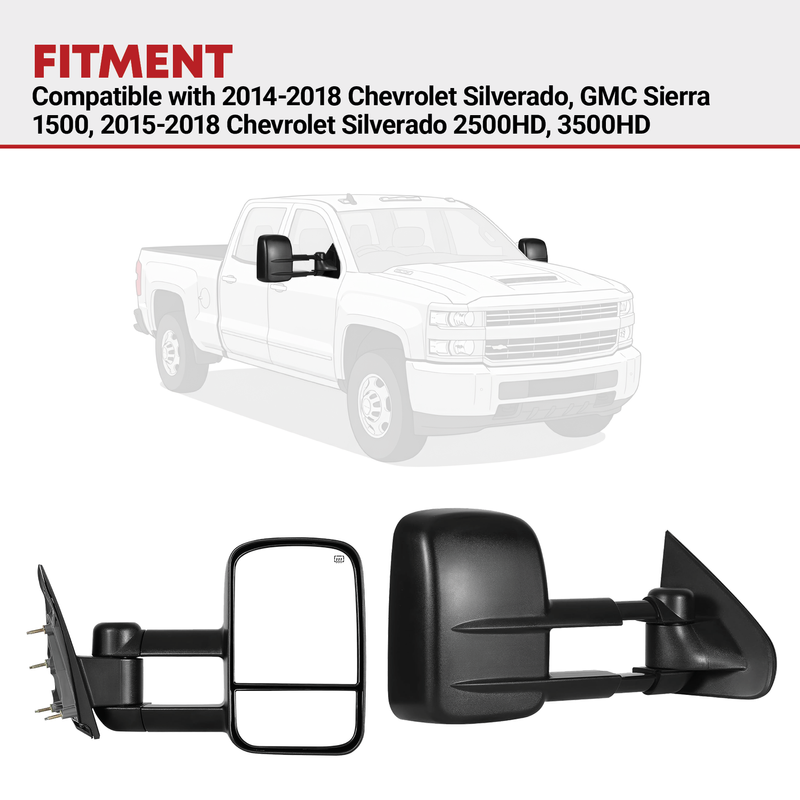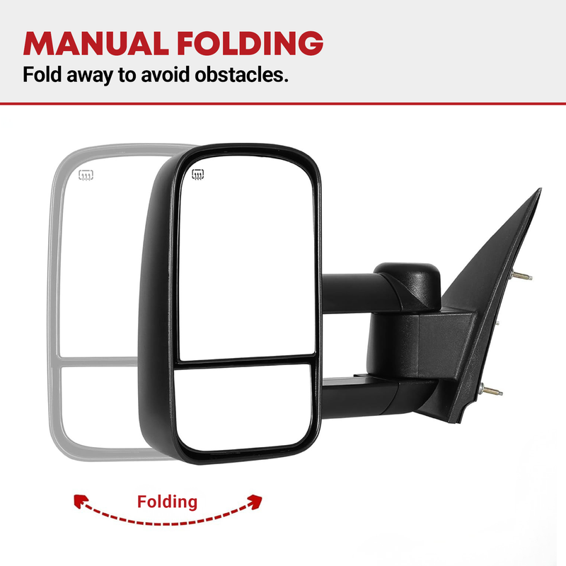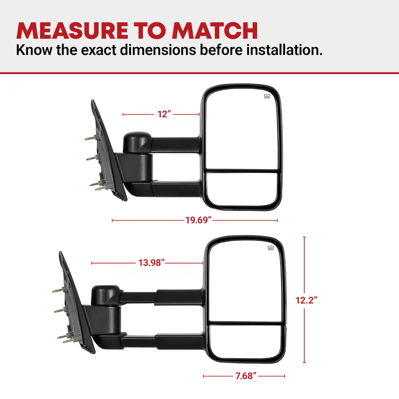 You get a great upgraded towing mirror that meets the same standards set for factory mirrors and they mount in the same location for easy installation.