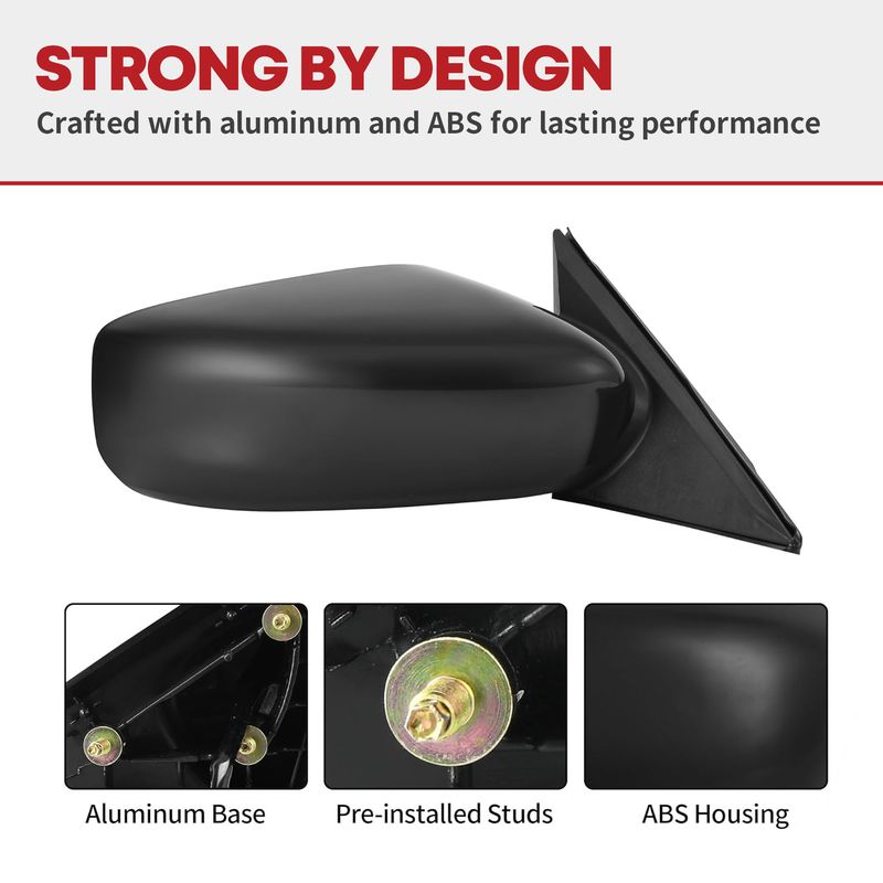The towing mirrors feature a classic triangle construction, durable aluminum base, and pre-installed studs for a stable installation on your vehicle.