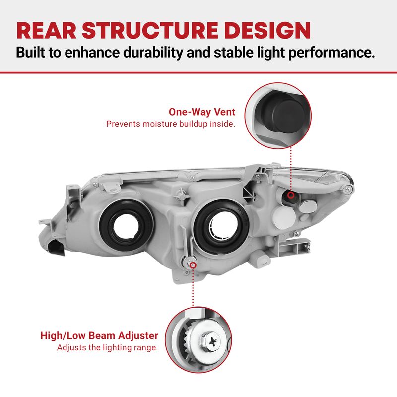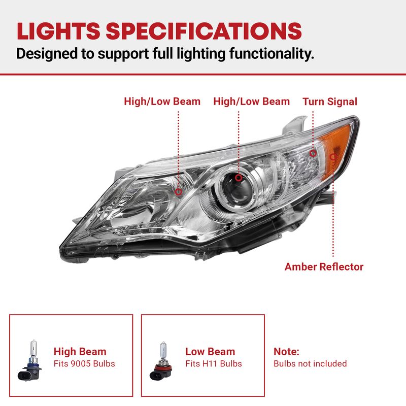YITAMOTOR Toyota Camry chrome housing clear lens. A high-grade clear lens offers better visibility. As a much brighter alternative to dim, yellow headlights. A sharper, more focused beam ensures a pleasurable driving experience.