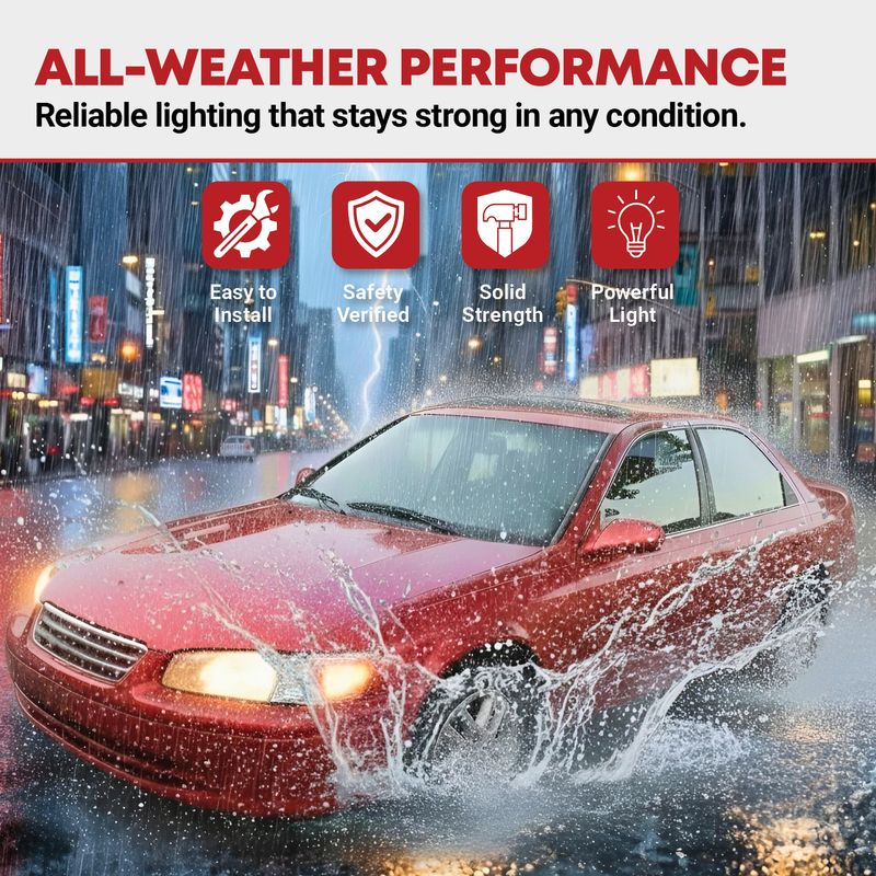The specially sealed structure features excellent water resistance to prevent moisture from entering inside, brightening up your way clearly ahead when driving on rainy, muddy, and snowy days.