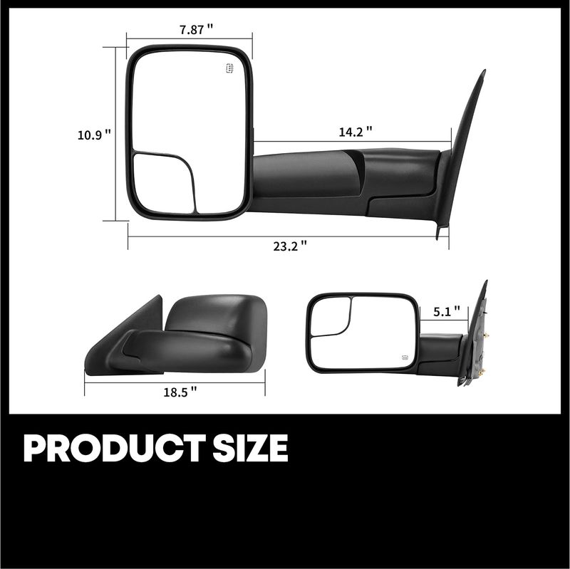 This YITAMOTOR mirror was engineered to look, fit and function like the original mirror assembly for your vehicle's specific year, make, and model. Upgrade to our high-quality towing mirror today and enjoy a safer, more enjoyable driving experience.