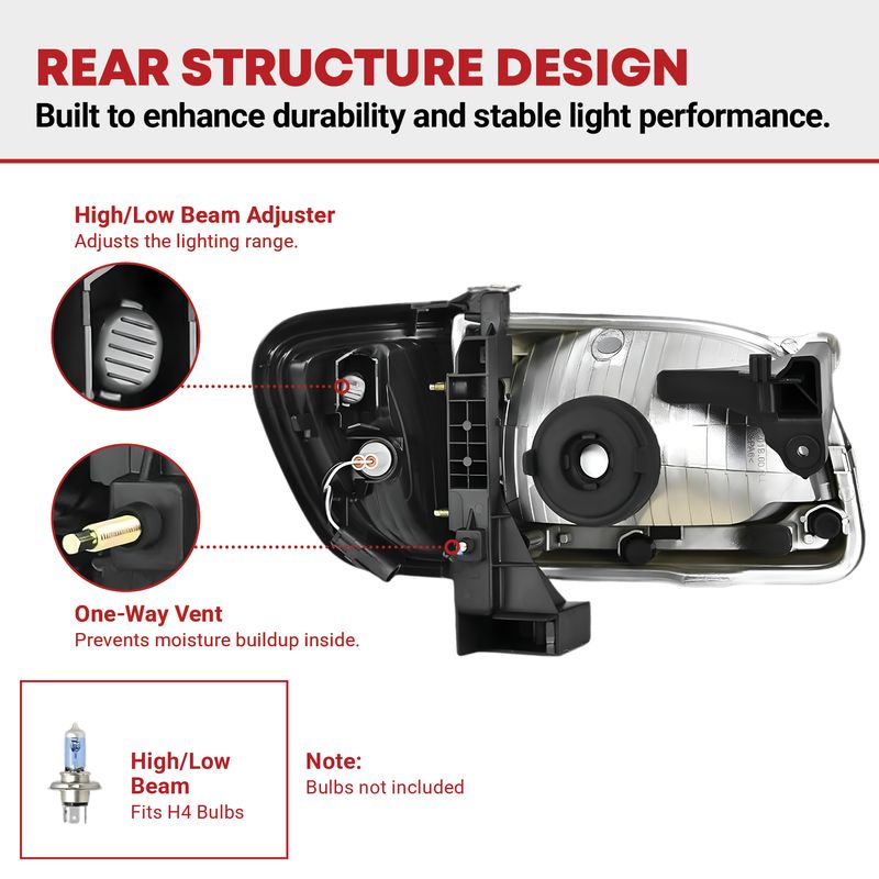 Our headlights are thoroughly tested to deliver smooth operation as well as for impact and heat resistance and endurance against rough road conditions over a long period of time. The units are completely sealed to prevent moisture from being trapped inside the housing.
