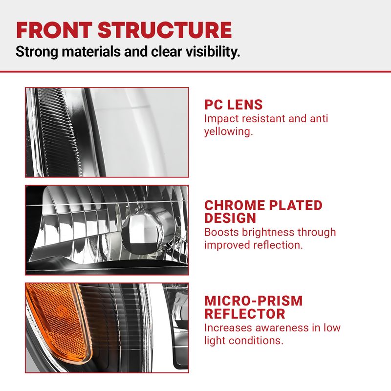 As a fully compatible replacement for factory parts, our bolt-on style headlights are designed for quick and easy installation, requiring no modification or drilling.
