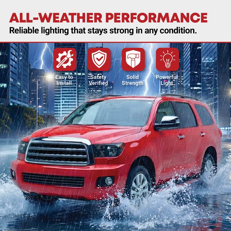 The specially sealed structure features excellent water resistance to prevent moisture from entering inside, brightening up your way clearly ahead when driving on rainy, muddy, and snowy days.