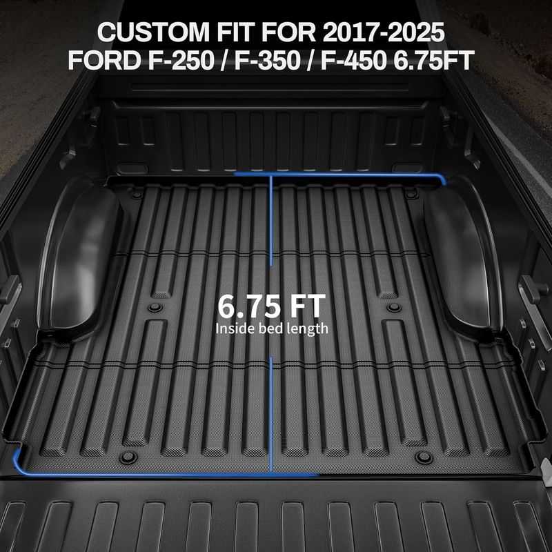 Unmatched Durability: high-density TPE construction stands up to wear, spills, and the toughest conditions; Our recyclable 2017 2018 2019 2020 2021 2022 2023 2024 2025 Ford F250/F350/F450 6.75FT truck bed mat works well from sub-zero to scorching hot to last for years
