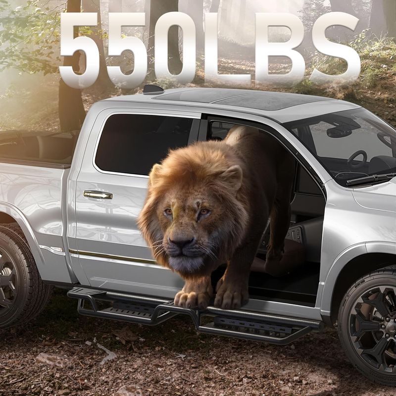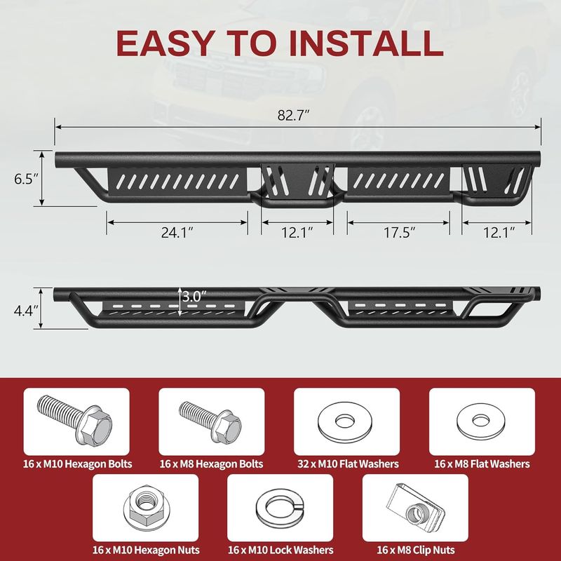 Heavy-Duty Carbon Steel: The step rails are made from thick, heavy duty steel pipes with a weight capacity of 550 lbs; The durable powder coating grants your vehicle side protection against dirt, water, and rust